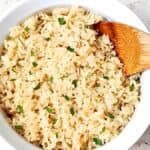Herbed Rice Pilaf with Orzo is a versatile side dish. Fluffy rice is flavored with herbs and butter, perfect for many dinner ideas. Easy to make and budget-friendly.